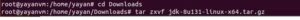 Jdk dosyası indikten sonra, dosyanın bulunduğu dizine geçilip, sıkıştırılmış dosyaları bulunduğu yere “tar” komutu kullanılarak çıkartılır.