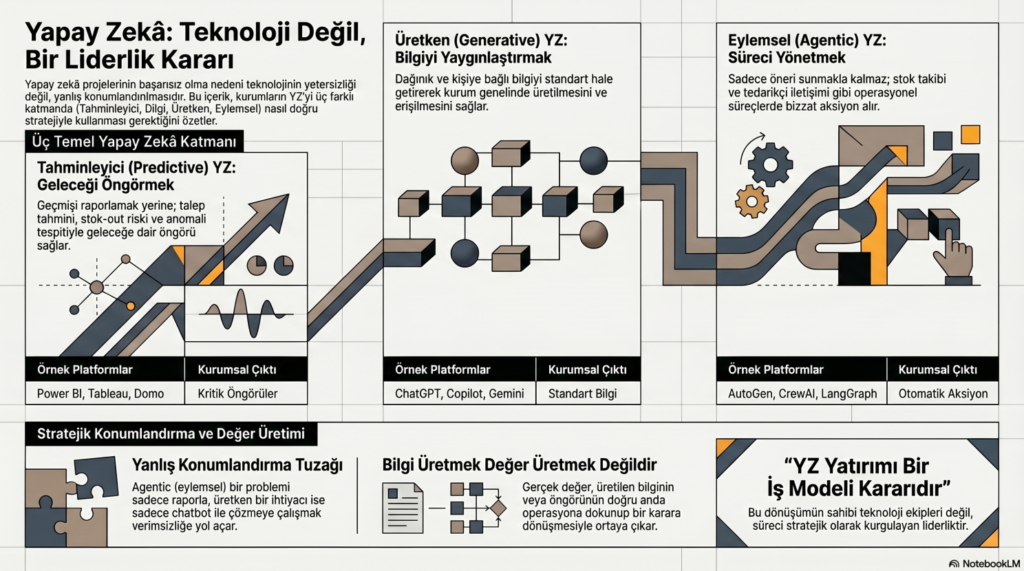 Bu yapı içinde her bedene uyan tek bir “AI çözümü” yoktur. Çünkü problem tek değil.